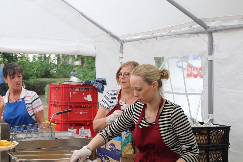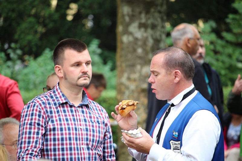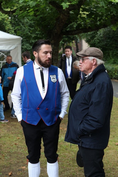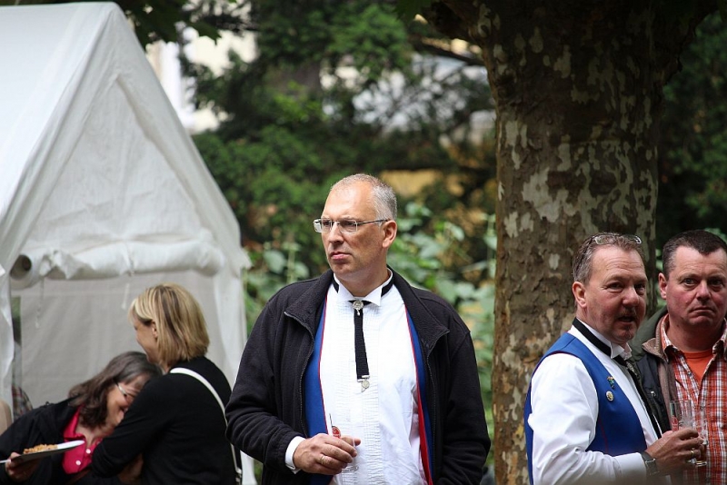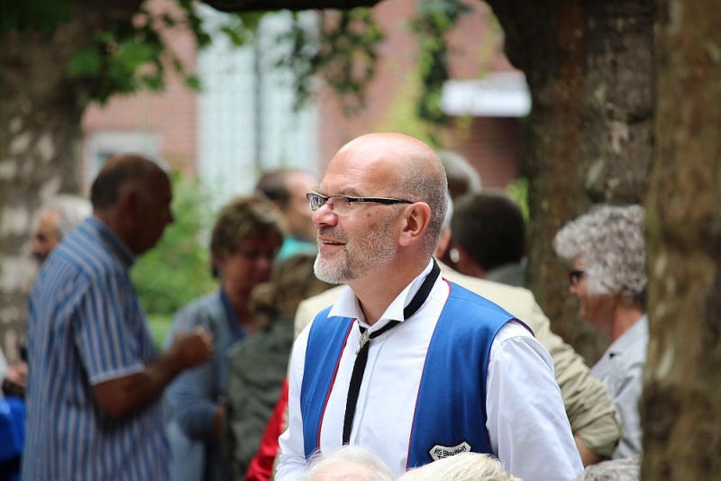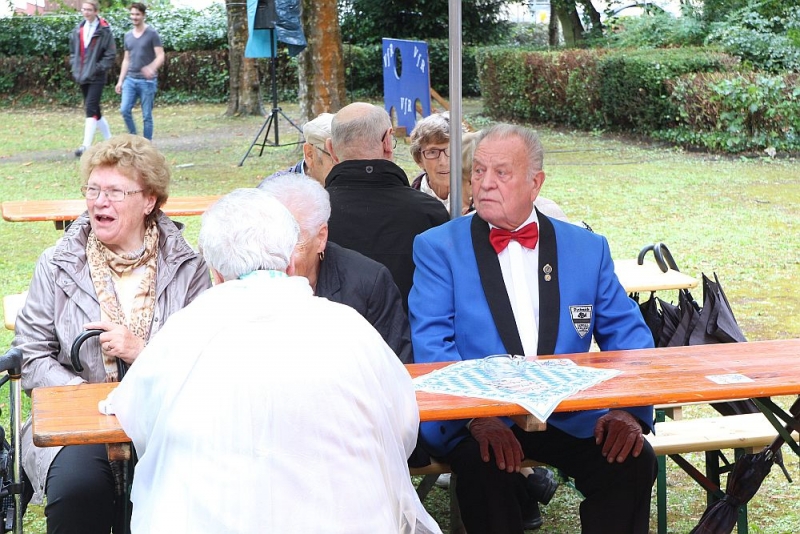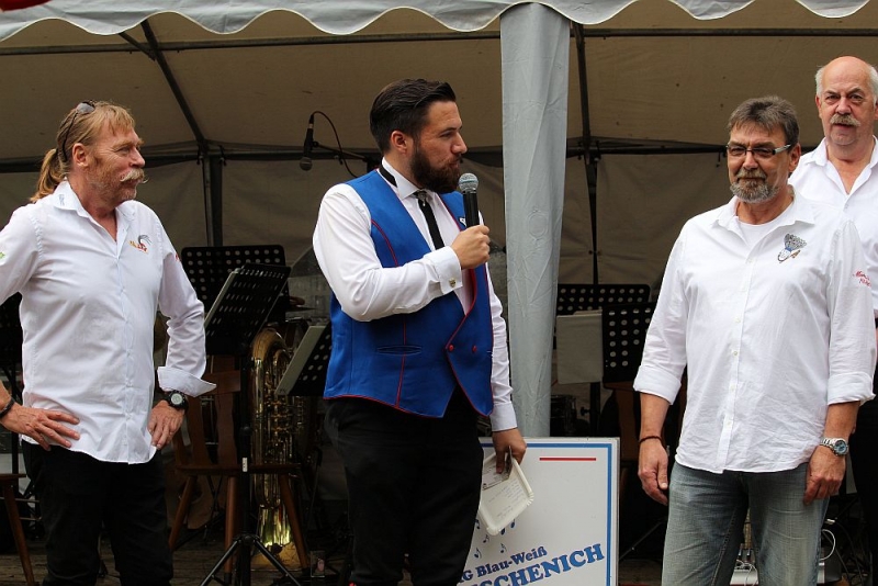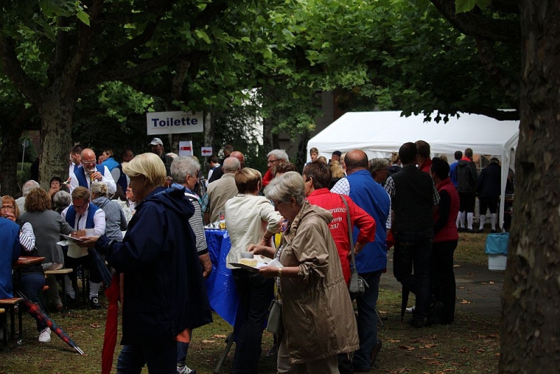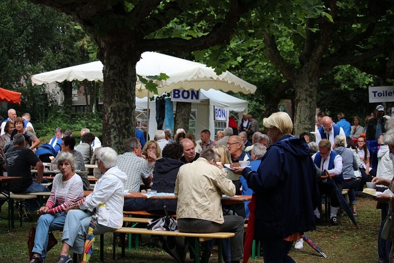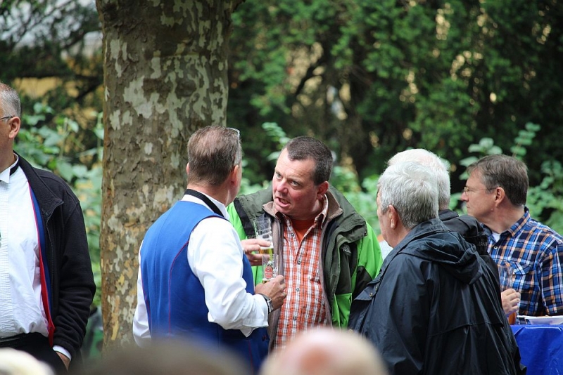 Mit einem so großen Erfolg hatten die Fischenicher Blau-Weißen nun nicht wahrlich gerechnet. Denn alle Gäste und Gastgeber waren sich einig: Der Rosellenplatz mit seinen großen, Schatten spendenden Plantanen ist ein richtig guter und schöner Platz zum Feiern. Nach 1953, als dort das Kriegerdenkmal eingeweiht wurde, wurde auf dieser “Location”, wie man auf neudeutsch sagt, nun zum allerersten Mal fröhlich musiziert und gefeiert. “Das war sicherlich nicht zum letzten Mal”, strahlte der 1. Vorsitzende Michael Mehl nach diesem gelungenen Auftakt. Unsere Gesellschaft hat damit den Rosellenplatz als wunderbare Feierstätte “entdeckt”.