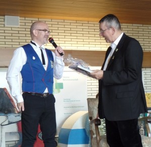 die Grüße der Stadt Hürth überbracht hatte, mit dem Lied “Schützenliesel”. Schließlich war Reinhold Steinröder seit 1994 Diözesanpräses der rund 340 kirchlichen Schützenbruderschaften. Als Abschiedsgeschenk unserer Gesellschaft überreichte unser 1. Vorsitzender Michael Mehl ihm ein schönes koloriertes Bild unserer Fischenicher Pfarrkirche, gezeichnet und handsigniert vom Künstler Jan Künster aus Bonn. Pastor Steinröder wünschte sich dann noch von unserem Blasorchester den Marsch “Preußens Gloria”.