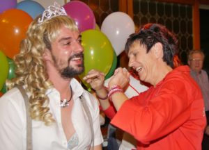 Von links nach rechts: Prinz Olli II., Kranken-schwester Kai, Jungfrau Anni (noch mit Bart) und Bauer Sascha