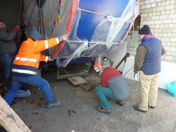 Am Samstag 11.02.2012 haben wir den Karnevalswagen vom Blasorchester und Tanzcorps aus dem Winterschlaf geholt. Dank der Hilfe einiger Mitglieder vom Blasorchester, Tanzcorps, Senat und Vorstand, haben wir die Trommel wieder auf den Boden geholt. Jetzt muss die Trommel nur noch ein paar Schönheitsreparaturen unterzogen werden, dann kann sie wieder ihren Einsatz im Karnevalszug am Sonntag 19.02.2012 und im Kendenicher Zug am 20.02.2012 finden.