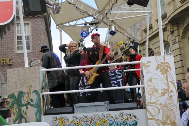 Sie sangen begeistert mit, wenn wir Musik machten. Da kam unser sehr großes Repertoire mit vielen alten und neuen Karnevalsliedern voll zur Geltung. Aber eines hatten wir allen anderen mitmarschierenden Musikgruppen voraus: Markus, der alle Lieder live mitsang! Das hatten die Zuschauer am Rosenmontagszug noch nie gesehen und gehört: Ein Blasorchester mit Livegesang!