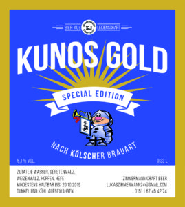 schon oft wurde versucht mir die Information zu entlocken, wie ich wohl meine Ferien verbracht habe. Normalerweise bin ich da ja sehr zurückhaltend und gebe nicht viel über mein Privatleben preis, diesmal allerdings habe ich in den Ferien etwas so Tolles erleben dürfen, dass ich euch daran teilhaben lassen möchte. Mir war zu Ohren gekommen, dass sich Lukas Zimmermann, der Sohn unser Saxofonistin Barbara Zimmermann-Strom, zwar nicht mit Noten- und Instrumentenstudien beschäftigt, dass er sich aber stattdessen in die faszinierende Welt des Bierbrauens einweisen lässt. Das klang spannend und da wollte ich gerne mehr darüber erfahren, so machte mich auf den Weg ins Vorgebirge. Nach ersten Erläuterungen zur hohen Kunst der Herstellung ging es erfreulicherweise schnell in die Verkostungspraxis. Und wie das manchmal so ist, kam uns nach dem fünften, sechsten Obergärigen die gloreiche Idee, dass genau das bei Musik im Park noch fehlt: Ritter Kuno in Gold, ich also als Special Edition. Lukas erklärte sich bereit für Blau-Weiß nochmal in den Braukeller zu steigen, während ich den Vorstand über das Vorhaben in Kenntnis setzte. Tja, was soll ich euch sagen, viel Überzeugungskunst brauchte es nicht. Und da sich die Kunde über die Zimmermann’sche Braukunst auch schon bis ins Orchester herumgesprochen hat, gibt es bereits reges Interesse. Aber ich kann euch beruhigen, Lukas war nach meinem Ferienbesuch noch sehr fleißig.