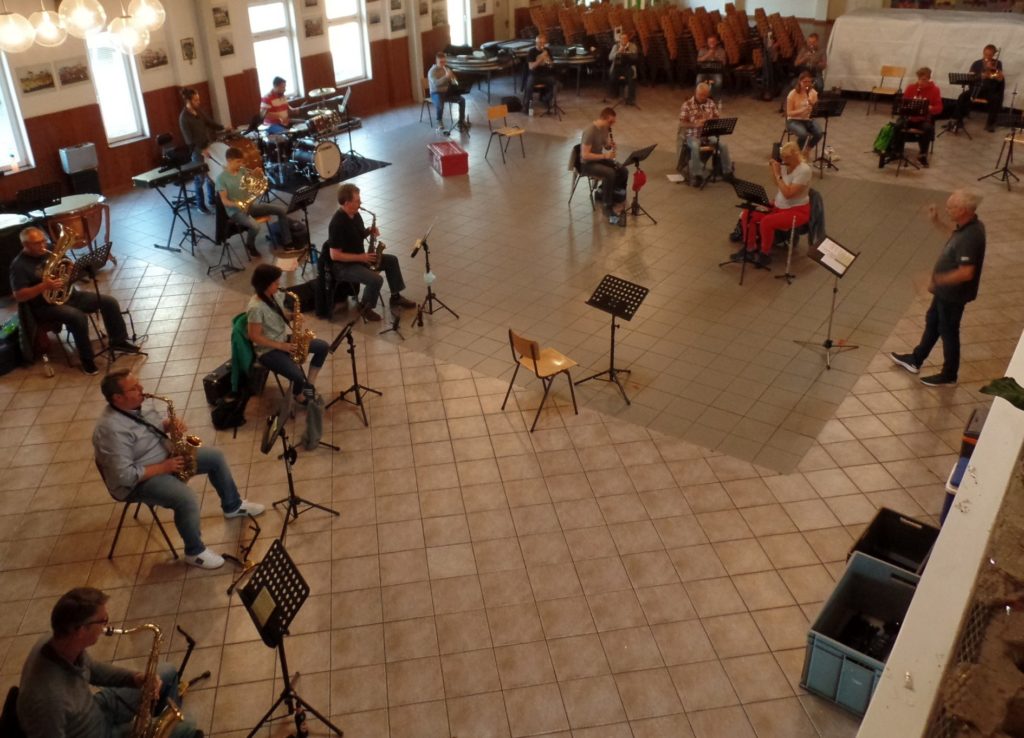 Am Montag, dem 25. Mai 2020 konnte unser Blasorchester zum ersten Mal nach langer Corona-Pause wieder gemeinsam proben. Die letzte Probe war vor ziemlich genau zwei Monaten und war damit gefühlt eine halbe Ewigkeit her.
