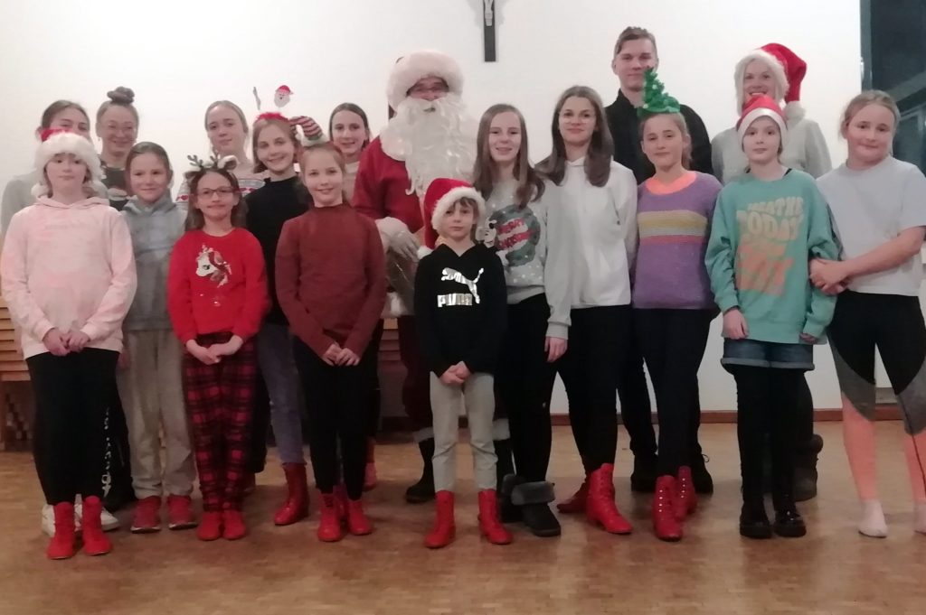 Doch dann gab es keine Wiederholung, sondern ein besonderer Gast unterbrach das Training: Der Nikolaus! Die Leiterinnen Diane Ermer und Lina Außem hatten im Nebenraum vorweihnachtlich eingedeckt und dekoriert und die jungen