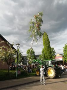 Beim Setzen des großen Maibaumes wurden der Junggesellenverein Fischenich und die Dorfgemeinschaft traditionsgemäß durch unser Blasorchester musikalisch unterstützt. Auf dem Rosellenplatz hatten sich alle getroffen und sind dann mit den Ortsvereinen, darunter auch unser Kinder- und Jugendtanzcorps, und zünftiger Marschmusik zum Mittelpunktplatz gegenüber der Martinusschule gezogen. Dort wurde der Maibaum unter dem Beifall zahlreicher Fischenicher von den Junggesellen aufgestellt. Dazu spielte unser Blasorchester zunächst einige Märsche und, als die bunt geschmückte Birke sicher stand, das Lied “Der Mai ist gekommen”. Danach ging es wieder mit Musik in die Martinusschule, wo Bürgermeister Dirk Breuer das neue Maikönigspaar Valentino Piscopo und Sara Weber mit ihren Ehrenpaaren krönte und anschließend in den Mai getanzt wurde.