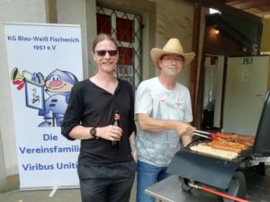 Zu einem gemütlichen Sommerfest traf sich die Vereinsfamilie am Sonntagnachmittag mit Kind und Kegel am Schützenheim. Unser 1. Vorsitzender Dirk Schwalbach bewährte sich als erfahrener Grillmeister. Unterstützt wurde er vom Archivar und Zeugwart Lars Thieme, von Günter und Hannelore Rist, Jana Lesser und Gerda Aretz. Bei einem kühlen Kölsch und anderen Kaltgetränken wurde sich in entspannter Atmosphäre unterhalten, gelacht, über den Verein philosophiert, getratscht und der Musik vom Band gelauscht. Die Kinder tobten nebenan auf und an den Spielgeräten.