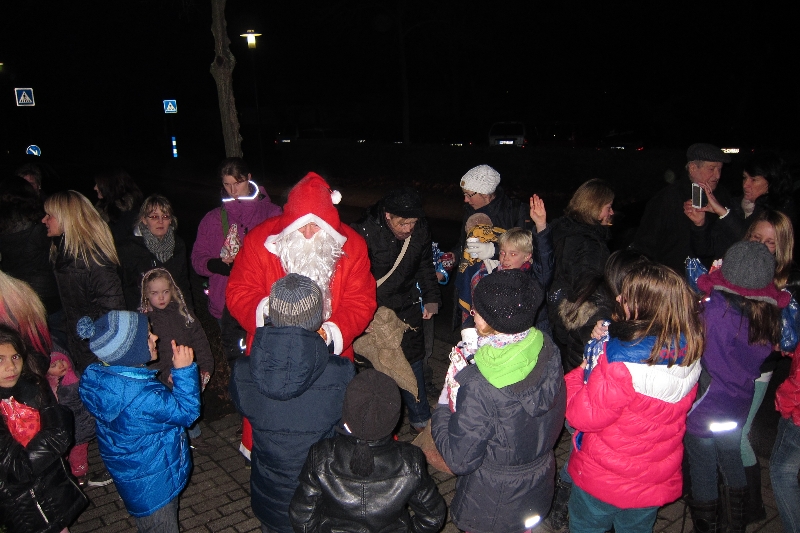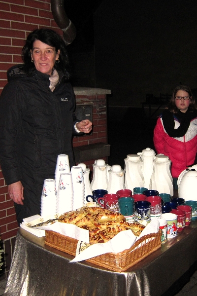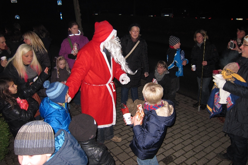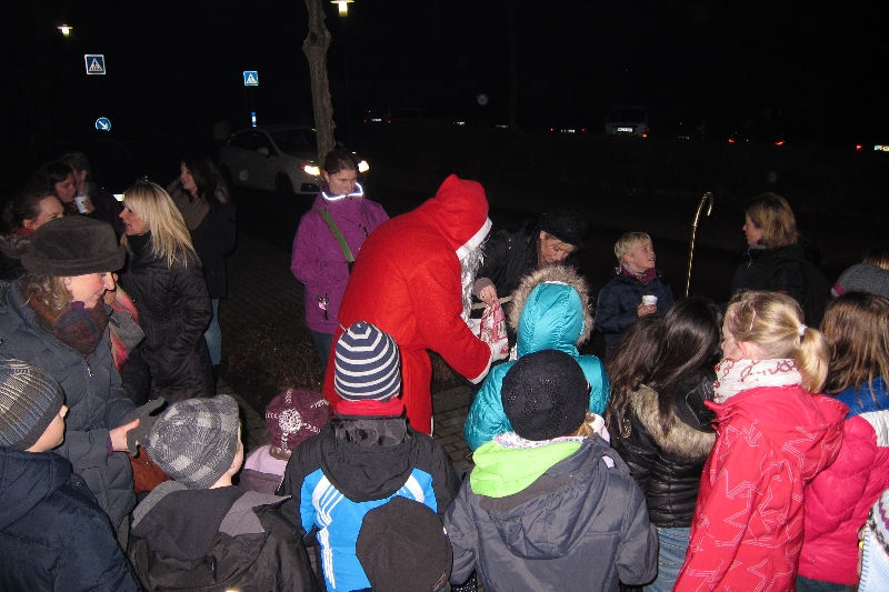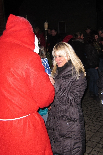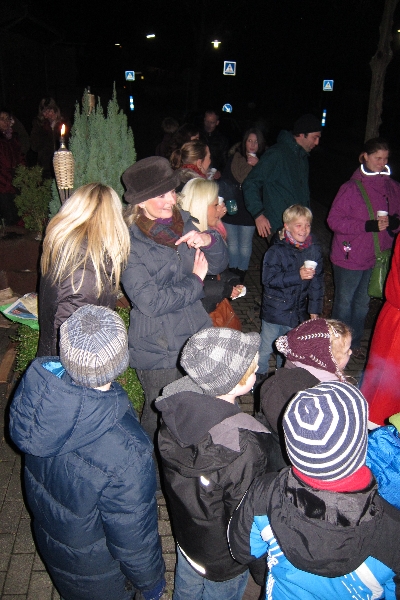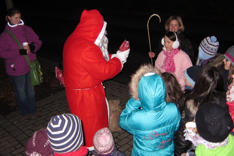 Die Bläser stimmten Weihnachtslieder an, die von den Kindern mitgesungen wurden und Josef Außem erzählte Weihnachtsgeschichten. Von diesem weihnachtlichen Treiben wurde dann sogar der Nikolaus angezogen. Er kam und sprach mit den Kindern, ob sie denn auch brav gewesen seien. Zum Schluss verteilte er dann sogar Geschenke. Auch nachdem der Nikolaus wieder weiter ziehen musste, blieben doch einige Gäste noch am Feuer stehen und genossen den Kakao und den Glühwein.