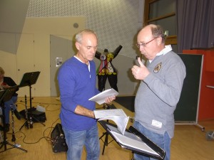 Mit mehreren neuen großen Potpourris und einem brandneuen Couplet im Notenkoffer kam Sänger Wicky Junggeburth zur gemeinsamen Probe mit unserem Blasorchester in die Aula der Kath. Martinus-Grundschule. Die Noten hatte er gerade erst druckfrisch von seinem Arrangeur erhalten. Das erste neue Potpourri “111 Jahre Jupp Schlösser” wurde ausgeteilt und gespielt. Dabei hatten unsere Amateurmusiker nicht nur auf Tempo-, Rhythmus- und Tonartwechsel sowie auf den Sänger zu achten. “Das war ja auf Anhieb perfekt!”, lobte Wicky Junggeburth, der unser Blasorchester bei zahlreichen Auftritten als zuverlässige musikalische Begleiter schätzen gelernt und schon oft öffentlich gelobt hat. Auch das zweite neue Potpourri klappte sofort, ebenso sein neues Couplet über die Tücken der modernen Kommunikation “Dat es nit mih normal”. Bereits beim zweiten Durchlauf war hier der Kuchen gegessen.