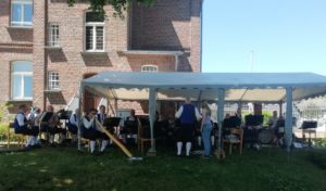 Beim diesjährigen Pfarrfest in der kath. Pfarrgemeinde St. Martinus Fischenich gab es eine ungewöhnliche Premiere: Das Musikstück mit dem Titel “Free” für Didgeridoo in Db und Blasorchester erlebte seine Welturaufführung. Gerd Außem, der Leiter des Blasorchesters der Fischenicher Blau-Weißen, hatte den Solotrompeter und Komponisten Matthias Heßeler, seinen früheren Kameraden beim Musikkorps der Bundeswehr, gebeten, ein Musikstück für Didgeridoo und Blasorchester zu schreiben.