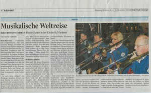 Weihnachtskonzert – Ankündigung im Hürther Wochenende