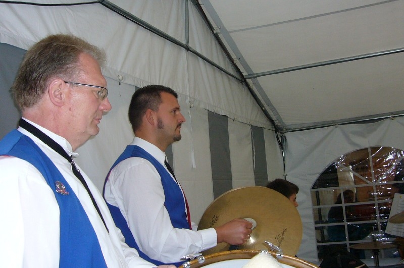 Leider hielt das gute Wetter, das uns während des Festzugs noch ins Schwitzen brachte, nicht. Mitten im Platzkonzert ging ein Platzregen nieder. Auch wenn die Worte sich ähneln, schön war es nicht und einige von uns bekamen nicht nur nasse Füße. Aber wie immer konnte uns auch das nicht abschrecken und wir versuchten, die Gäste mit Musik vom schlechten Wetter abzulenken. Wir hoffen, das ist uns gelungen.